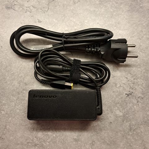Alkuperäinen ja hyväkuntoinen Lenovon 45W laturi / virtalähde Slim Tip liittimellä.