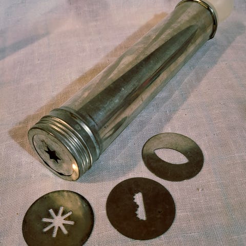 Retro pikkuleipäpursotin kolmella vaihtoterällä. Hyväkuntoinen.