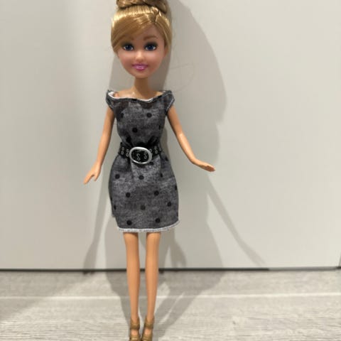 Noin 29 cm Barbie. Yhdet vaatteet ja kaksi paria kenkiä.