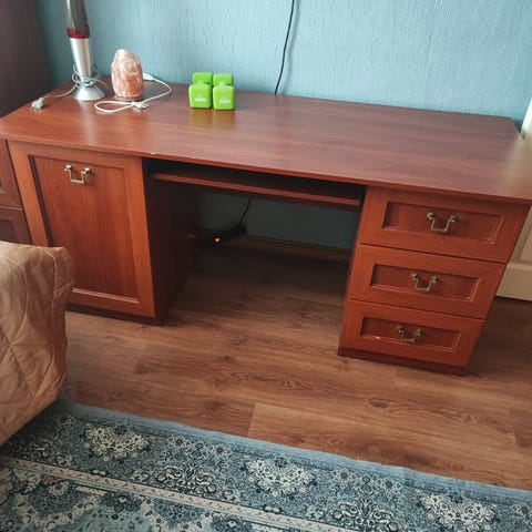Annetaan Ikean koulupöytä. Ehjä, käytön jälkiä näkyy