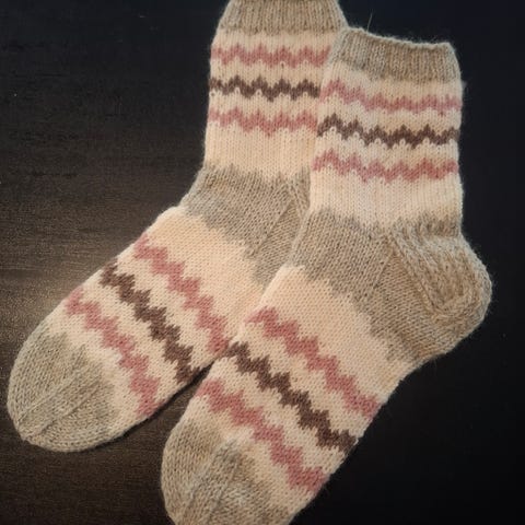 Ohuesta Novitan Nalle langasta kudotut villasukat. (75% villa, 25% polyamidi). Vahvistettu kantapää.