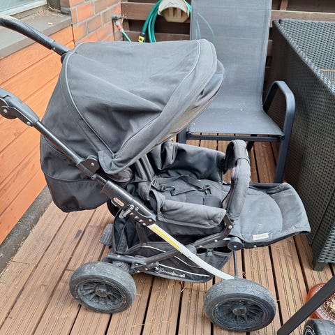 Emmaljunga lastenrattaat tummanharmaalla värillä. Rattaissa on säädettävä ikkunallinen kuomu, turvavaljaat, topattu jalkapeite ja sadesuoja. Kulkee myös lumessa hyvin isojen renkaiden ansiosta. Vain nouto.