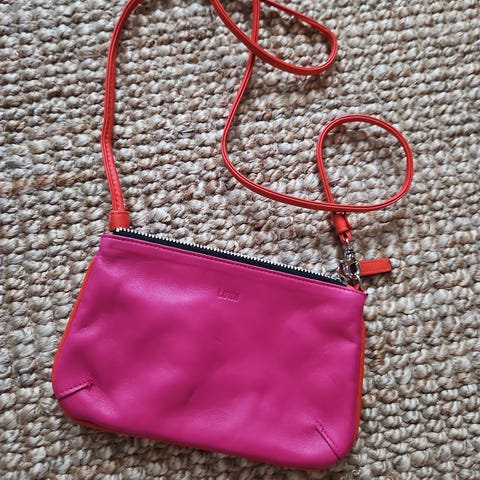 Myydään Lumin nahkainen tiilen värinen (oranssi) käsilaukku, johon mahtuu kortit, rahat, puhelin ja huulipuna. Kuntoluokitus hyvä/kohtalainen. Laukun pohjan kulmissa maalikulumaa, ja sisävetoketju oikuttelee suljettaessa / avatessa. Päällimmäinen vetoketju, joka sulkee koko komeuden toimii moitteettomasti.