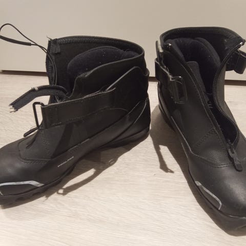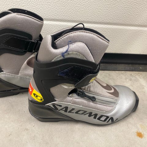 Salomon hiihtomono oranssin ja valkoisen värinen. Monossa on mustat ja valkoiset yksityiskohdat. Sopii hiihtoon ja tarjoaa tukea jalalle.