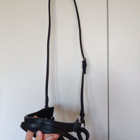 Hyvässä kunnossa. Kiinnitetään poskiremmeihin.