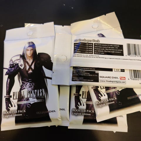 Setti Final Fantasy keräilykorttipelin kortteja, ostin nämä oletettavasti jostain boosterista sillon kun tämä peli ilmestyi, Final Fantasy fanina näin tarpeelliseksi. Ei tullut koskaan perehdyttyä, ja en tiedä näistä mitään.