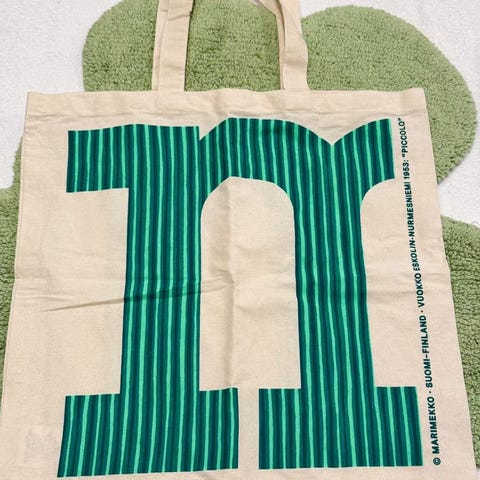 Limited edition Piccolo kuosinen logokassi. Laatikkomallinen olalla kannettava, napakkaa puuvillaa materiaalilta.