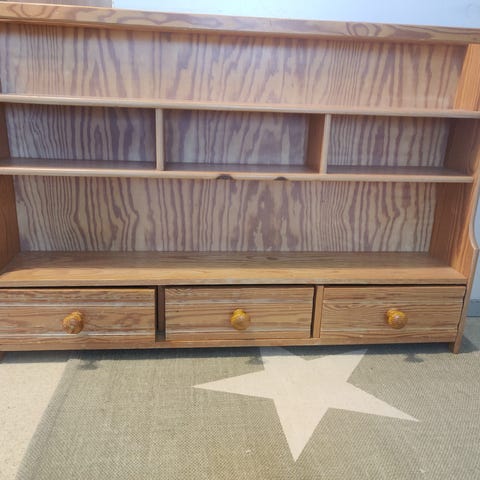 Pitkä massiivipuinen seinähylly. Vain nouto Tuomarilasta.