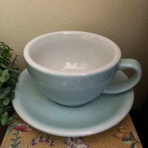 Lähes käyttämättömät Loveramics kahvikupit. Kuppeja 10 kpl ja lautasia 9 kpl.