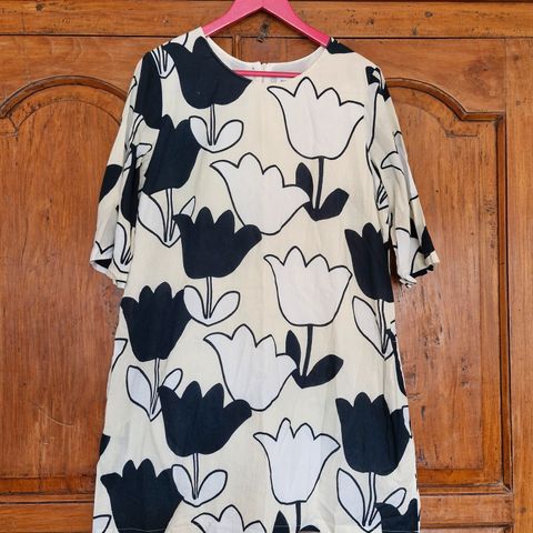 Myydään Marimekon kaunis tulppaanihelmainen silkkimekko, käytetty kerran hääjuhlassa. Juhlava ja kevyt mekko esim. kesäjuhliin. Selässä vetoketju, ei ole taskuja.