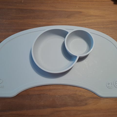 Oikein hyvä kuntoinen ruokailualusta sormiruokailevalle. Yhdellä käytetty, en moitittavaa keksi.