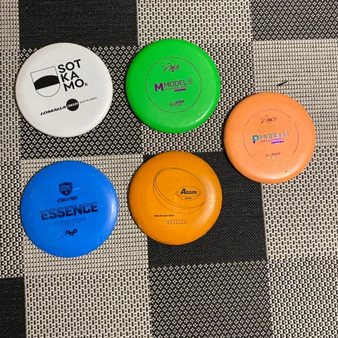 Innova Evolution Enigma Distance Driver frisbeegolfkiekko, väri vaaleanpunainen. Kiekko soveltuu pitkän matkan heittoihin frisbeegolfissa.