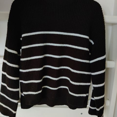 Ehjä, puhdas musta-vaaleanpunainen neulepaita. Myynnissä Marjalassa.