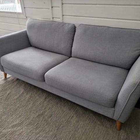 Tumman harmaa, 2 hengen sohva. Irrotettavat selkätyynyt.