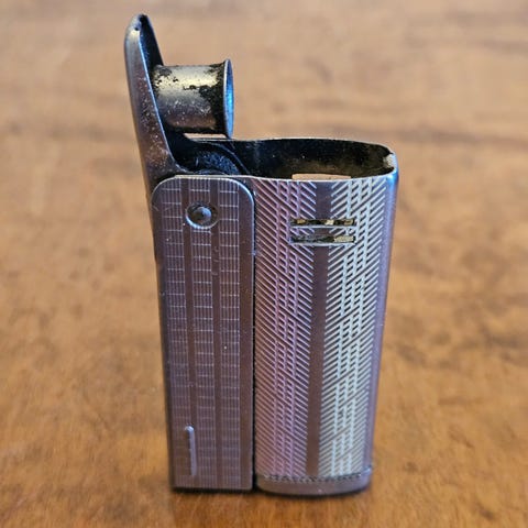 vintage IMCO Triplex -bensiinisytytin, valmistettu Itävallassa. IMCO (Julius Meister & Co.) oli itävaltalainen yritys, joka aloitti sytyttimien valmistuksen ensimmäisen maailmansodan jälkeen. "Triplex" viittaa mallisarjaan, joka tunnetaan luotettavuudestaan ja tuulenpitävästä rakenteestaan.