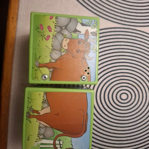 Myydään eläinlelu, josta kuuluu ääniä ja musiikkia kun eläimet laittaa paikoilleen.