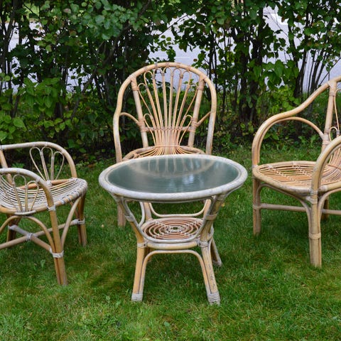 Rottinki tuolit ja kahvipöytä parvekkeelle