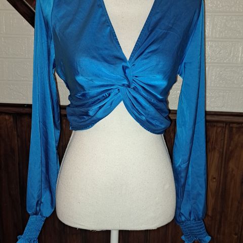 Puserossa on pitkät hihat ja solmittava kaulus. Nauhat voi silmia monella eri tavalla, tai jättää vaikka auki, jolloin puserosta saa helposti eri tyylisen.