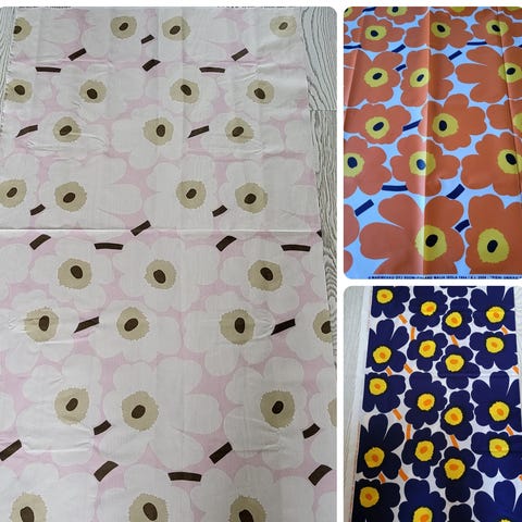 Marimekko uusi ja käyttämätön Unikko mini kangas. Täysleveä 145 cm. 77 cm korkea pala. Lähetyskin onnistuu myös sovitusti.