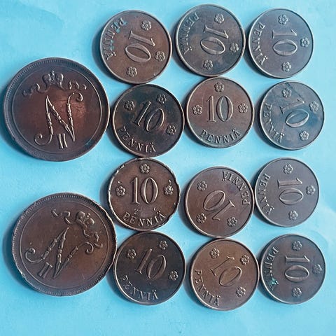 Kokoelma suomalaisia kolikoita eri vuosilta ja eri arvoilla. Kolikot ovat erikokoisia.Soveltuu keräilyyn tai numismaattiseen tutkimukseen. Tarjousten perusteella myyn. Katso muutkin kohteeni. Tarjouksia rohkeesti vaan. Voin vaikka myydä suht edullisesti.