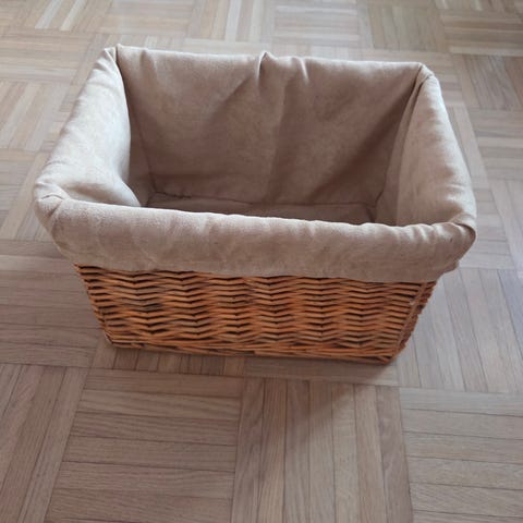 Myydään tummanruskea tukeva sisustuskori, jossa kansi. Pohjassa muutama pieni kulumisen jälki.