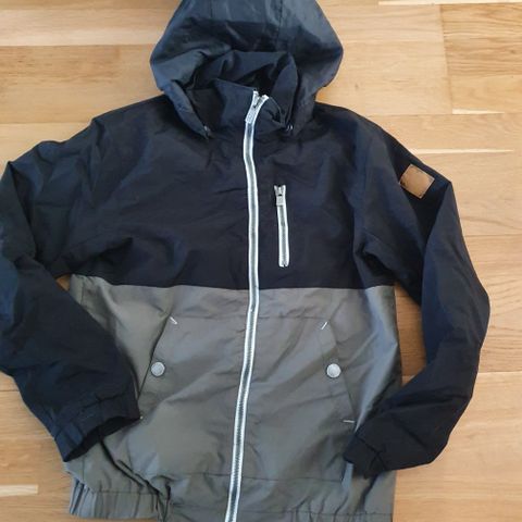 Vetoketju jumittaa välillä, välillä toimii mainiosti. Hihansuissa kulumia ja selässä pieni viilto, hihoissa samanlaisia jostain mäenlaskusta. Viillot eivät ole untuviin asti, joten täytteet ei niistä vielä ainakaan ulos pursu. Korjaustaitoiselle! Vetoketjun kun vaihtaa (tai sietää jumittelua) on vielä käypä takki.