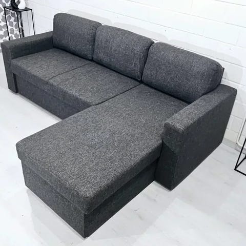Sohva on hyväkuntoinen. Juuri pesty runkoa myöden. Runko on tukeva. Divaanin alla löytyy säilitystila. Savuttomasta asunnosta ( ei tupakoitu sisällä). Divaanin puolta voi vaihtaa. Mitat Leveys 240cm syvyys 90cm divaani 160cm vuode 140x200cm. Eläintaloudesta, karvoja löytyy.