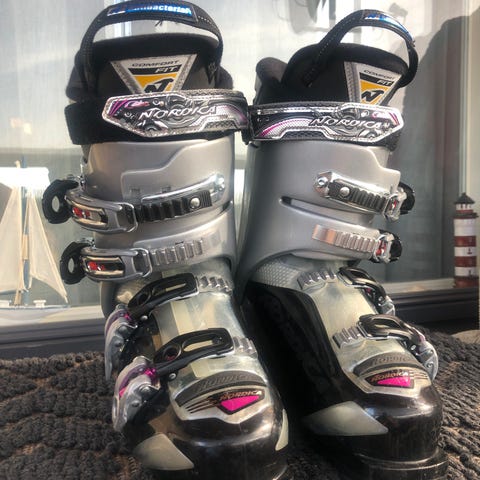 Myydään Nordica-laskettelumonot (värinä sininen/valkoinen/musta). Hyvät ja mukavat perusmonot rinteeseen: 4-solki + tarrakiristys, napakka istuvuus ja helppo säätää.