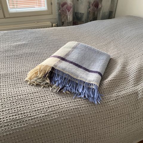 Myydään meillä vähälle käytölle jäänyt villaviltti, mitat 130× 200cm + hapsut. Käytetty, puhdas( pesty) nelivärinen, paksu ja erittäin lämmin villa huoppa/ torkkupeitto, materiaalilappu poistettu mutta on 100% villaa.