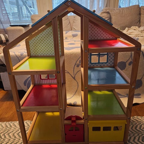 Paljon leikitty, käytön jälkiä on, "kierreportaat" puuttuu. Mukaan kalusteet, putsaus jää ostajalle. Nouto ja käteismaksu