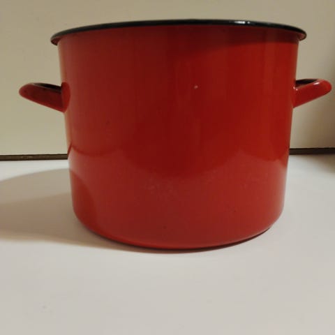 Finel Vegata emalikattila. Käytön jälkiä näkyy, mutta yleisilme melko siisti.