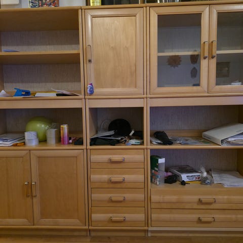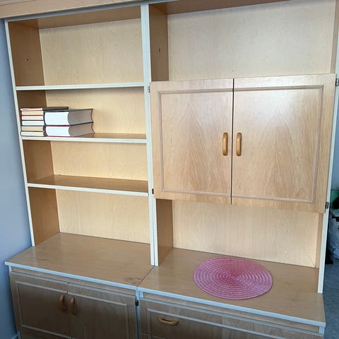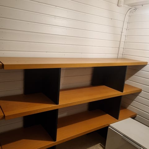 2kpl hyllyköitä, alaosassa kaappi, jossa hylly. Korkeus 160, leveys 75cm ja syvyys 30cm.