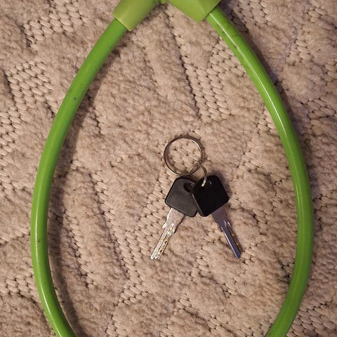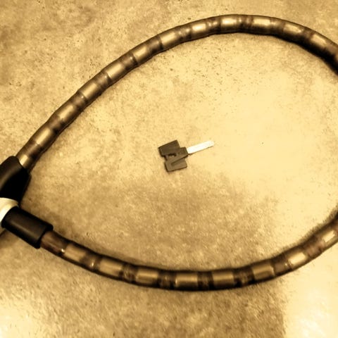Käyttämätön polkupyörän lukko avaimella. Pituus 120cm ja paksuus 10mm. Haku Joensuu Karsikko tai postitus.