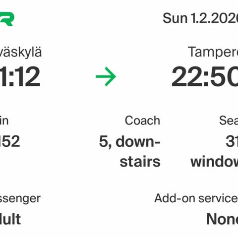 1.2. klo 21.12 lasten junalippu Jyväskylä-Tampere