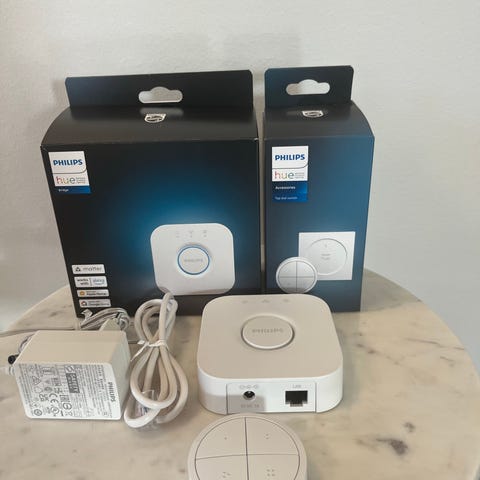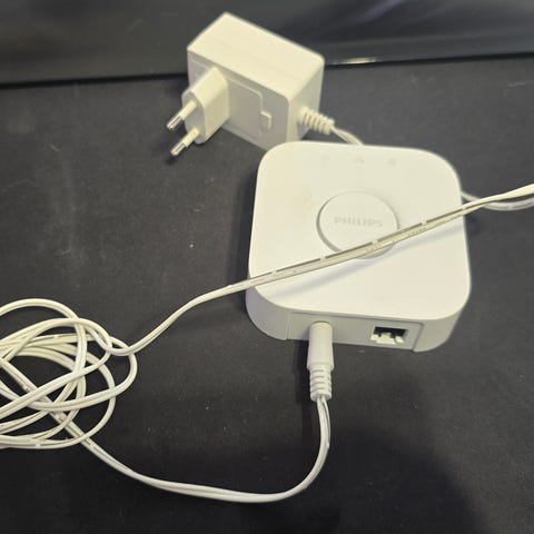 Kuvassa näkyvä valkoinen perus Hue Bridge. Muutaman vuoden vanha ja takuu loppunut. Otettu toimivana pois käytöstä. Mukaan alkuperäinen virtalähde ja ethernet-kaapeli.