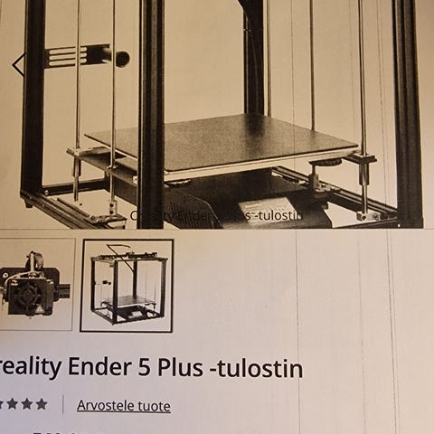 Myydään hyvä kuntoinen Creality Ender 3 S1 Pro. Tulostusalue 220 mm x 220 mm x 270 mm. Tulostettu noin 100-200h. Mukaan pussillinen erikokoisia suuttimia, alkuperäiset työkalut, muistikortti ja usb adapteri muistikortille.