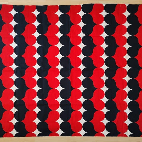 IKEA Nina Jobs kangas, jossa on punainen ja vihreä kukkakuvio.