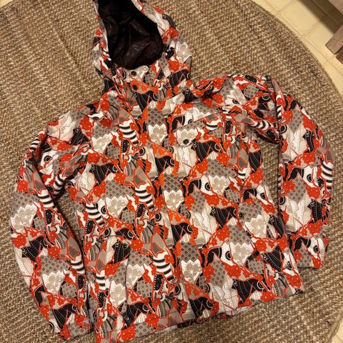 The North Face naisten laskettelutakki, koko M. Takki on väriltään vaalean sini-musta kirjava. Kaksi vetoketjullista sivutaskua, hissilipputasku hihassa ja tarrakiinnitys rintataskussa sekä kainalovetoketjut. Hihoissa tarrakiinnitys.