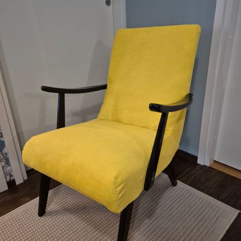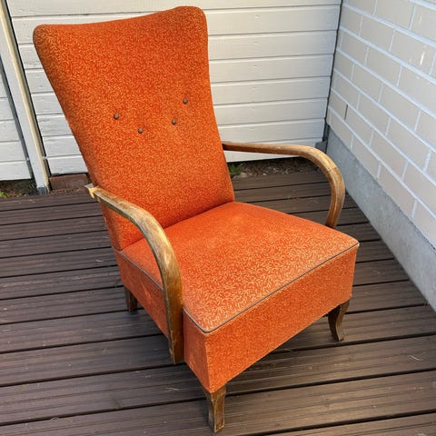 Nojatuoli 1950-60 luvulta. Ehjä kangas, ja siisti. Jaloissa pientä kulumaa.