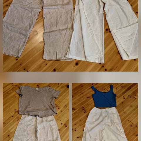 Myyn kauniita housuja. Mustat, tiukat (koko 36-38, 20. koko, uudet) lämpimällä vuorilla; 2) Kevyt- koko: L, 2. koko: kesä, 3) kauniit housut, joissa tupsut helmassa: uudet, koko: 36-38. Hinta 100 e - erittäin pehmeä ja hyvä materiaali tanssimiseen - puuvillaa elastaanilla - joustaa hyvin ja saa sinut näyttämään hoikemmalta 4) mekot - koko: 36-38 —— 5. yksi mekko, mustavalkoinen, värikäs - 12. koko. uusi. Ja monia muita vaatteita. punainen villaneule kuviolla - koko -: L - voi olla koossa: M . Takki: koko: L - 10-25 e.
