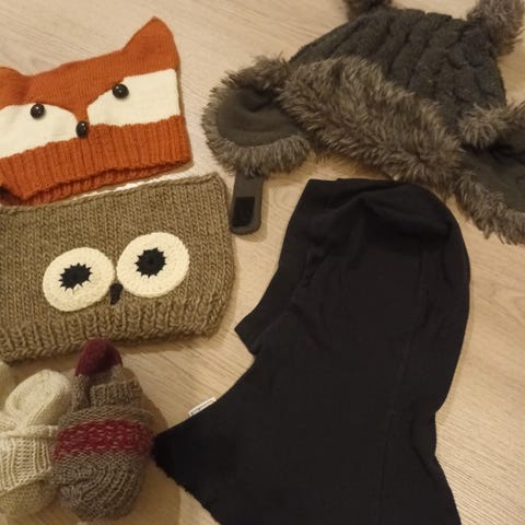 Kolmet villasukat. Neljät rukkaset. Noin 9-11 vuotiaalle.