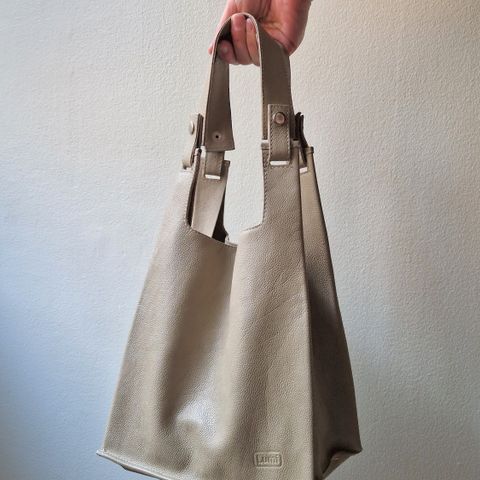 Myydään Lumin nahkainen tote bag/ iso olkalaukku. Laadukas ja pehmeä nahka. Koko: korkeus 25cm, leveys 45cm (kapenee hieman ylöspäin), pohja 9cm (kapenee ylöspäin). Irrotettava olkahihna, sulkeutuu vetoketjulla. Sisällä iso, vetoketjullinen tasku, 2 sivutaskua ja avaimenperä. Hyvä/erinomainen kunto.
