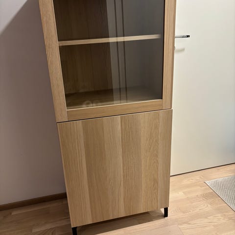 Ikean Bestå sarjan kaappi jaloilla. Toisessa kyljessä 3 reikää. Muuten hyvä kunto