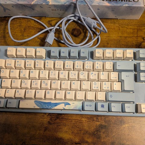 Tästä vähän anti-RGB meiningin näppäimistöä seuraavalle. Rasvatuilla tai ainakin siltä tuntuvilta kytkimillä.
