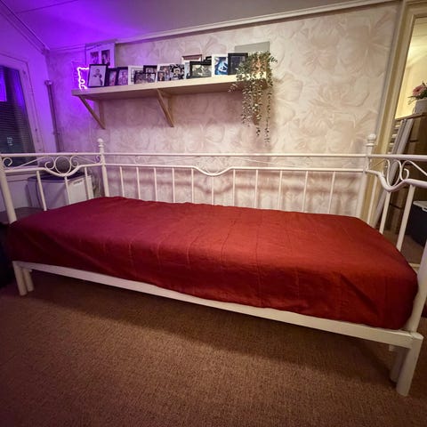 Muuton alta pois kuvan mukainen sohvasänky vaikka mökille tai varavuoteeksi patjoineen. Muutamia kolhuja maalipinnassa jotka on huomioitu hinnassa. Vuodevaatelaatikko kuuluu hintaan. Nouto.