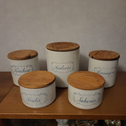 2 kpl Pentikin säilytysastioita. Tee ja sokeri. Myyn molemmat yhteishintaan.