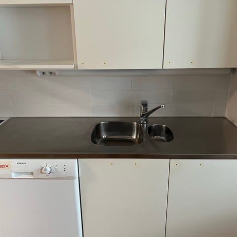 600mm ja 650 mm leveitä tasoja noin 6-7m väri kirsikka. Pohjassa muutama ruuvin reikä, kun on kiinnitetty alakaappeihin. Joitain peitelistoja jatkoskohtiin.