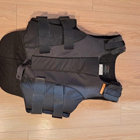 Myydään Airowearin Outlyne L5 (koko 44/46) Regular ratsastusturvaliivi naisille. Värinä on black/graphite eli musta/harmaa.