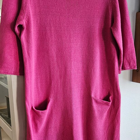Kaunis puuvillainen Gudrun Sjöden tunikamekko, koko M. Kauniit tikkauskoristeet hihansuissa ja rinnan alla. Levenee alaspäin ja sivuilla kivat taskut. Väri fuksianpunainen. Erinomainen kunnoltaan, kuin uusi.