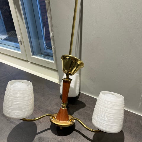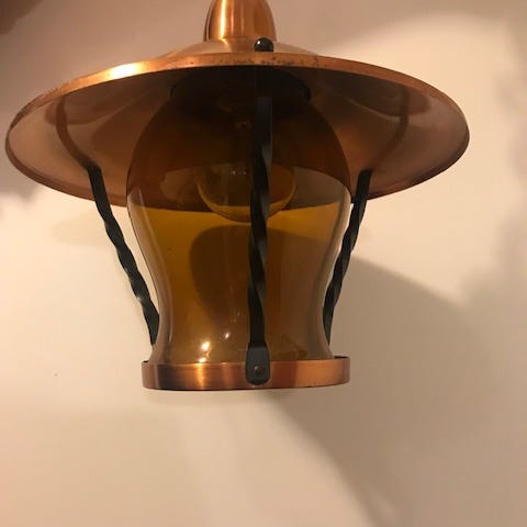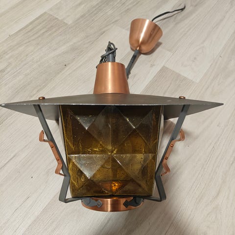 Valinte Oy:n punainen kattolamppu. Toimiva ja siisti. Lasia ja metallia. Sähköt uusittu noin vuosi sitten